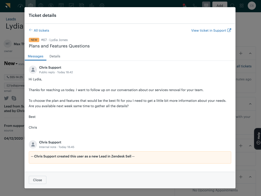 Our Zendesk Sell & Chat Integration helps businesses to engage with more prospects and customers and capture these conversations automatically.