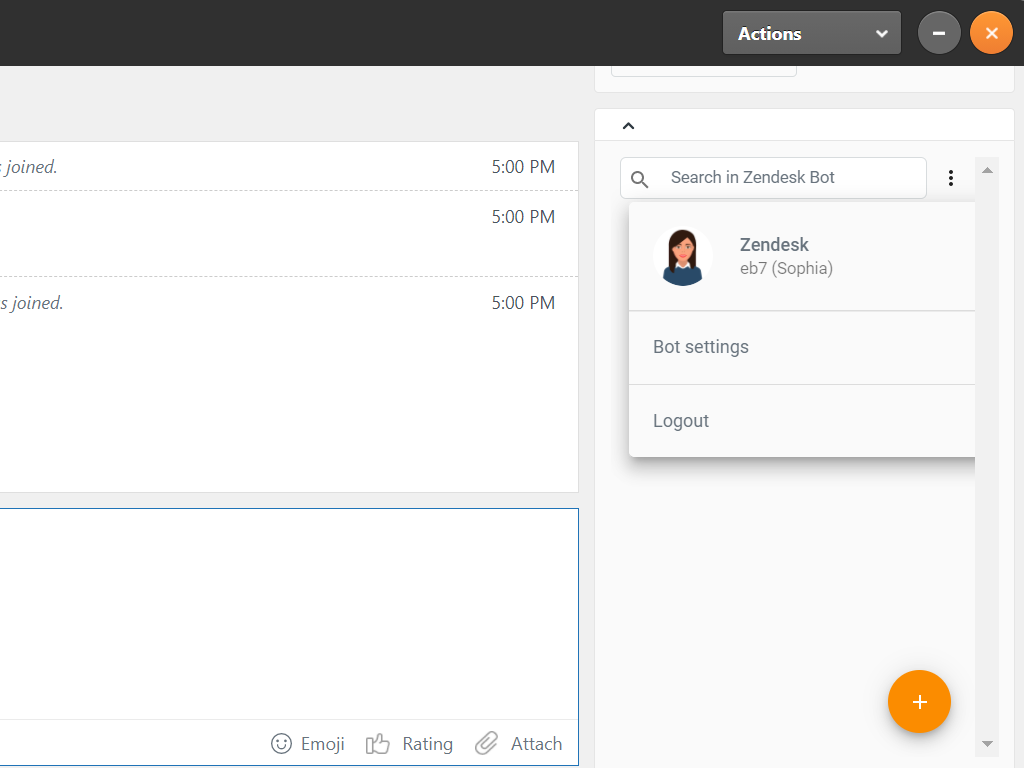 • Quickly access customer support knowledge from your connected e-bot7 org inside the Zendesk console.
