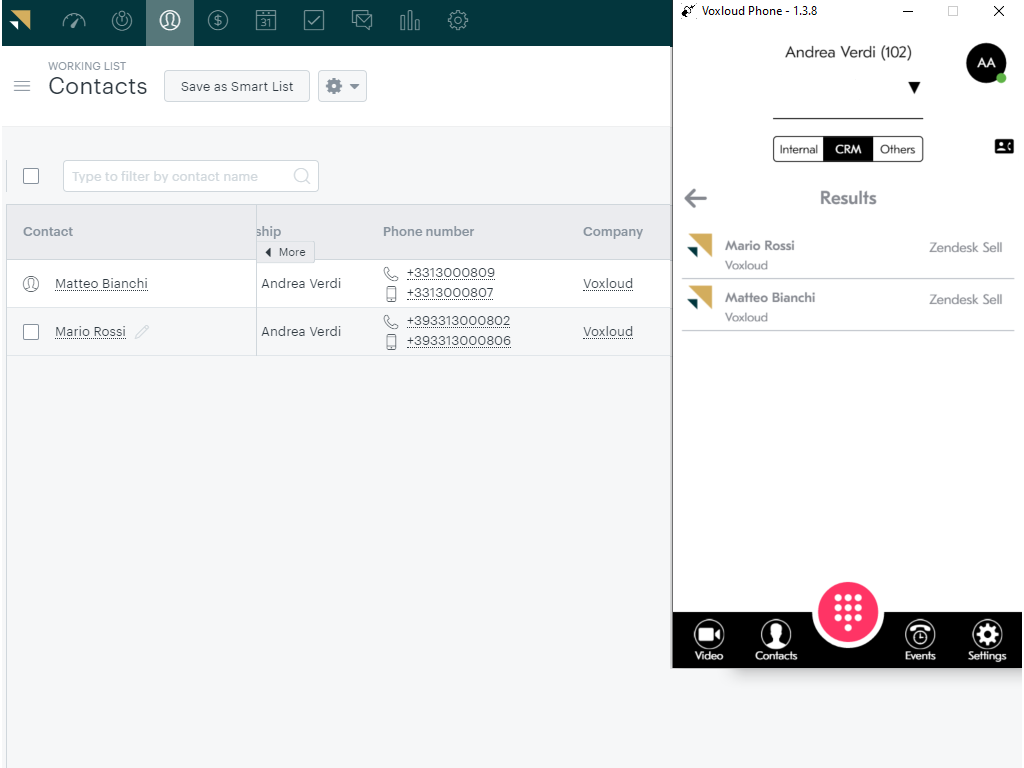 Automatic customer identification when a call arrives based on the Zendesk Sell contacts list
