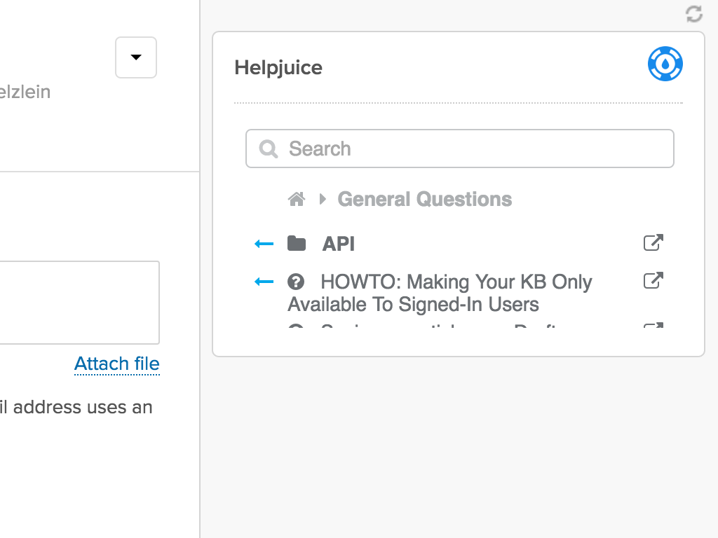 Easily navigate and search your Helpjuice Knowledge Base from within Zendesk tickets. You can also easily use your questions to answer Zendesk tickets.