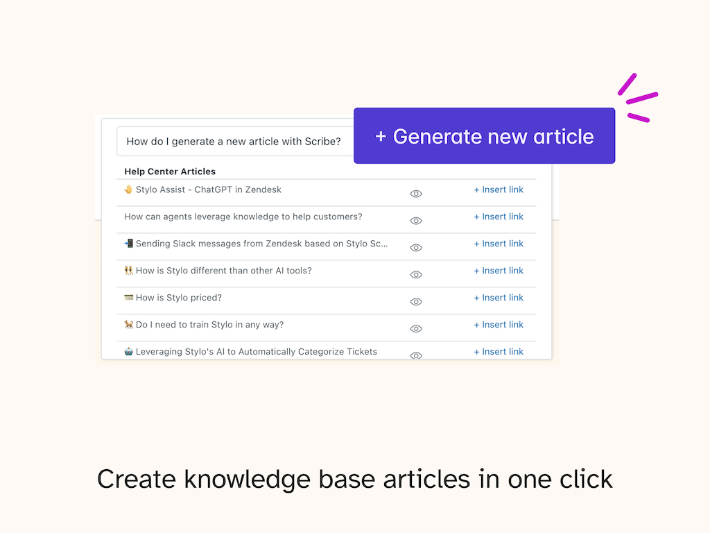 Using the GPT technology from OpenAI, Stylo Scribe enables you to craft comprehensive help center articles directly from your ticket comments. Ensuring that each piece is relevant, informative, and on-brand.