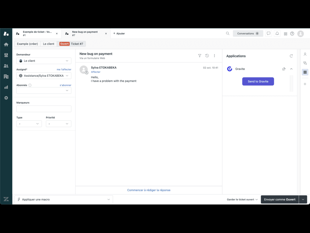 Voila! Your support team can now push tickets from Zendesk to Gravite by clicking on the 'Send to Gravite' button in the apps sidebar.