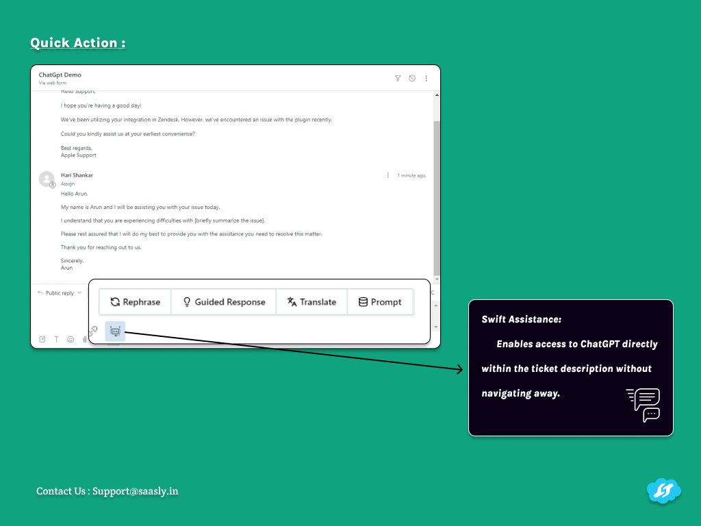 The integration of real-time ChatGPT Playground directly into Zendesk is an extraordinary feature that boosts agent productivity by eliminating the need for switching between platforms.