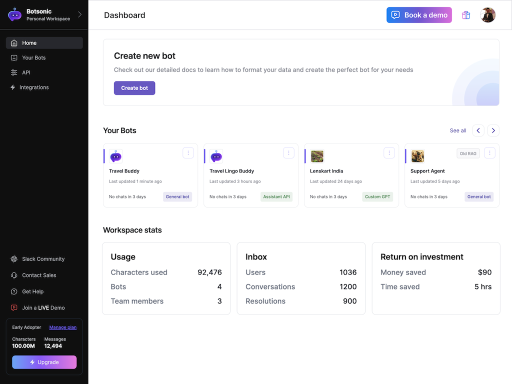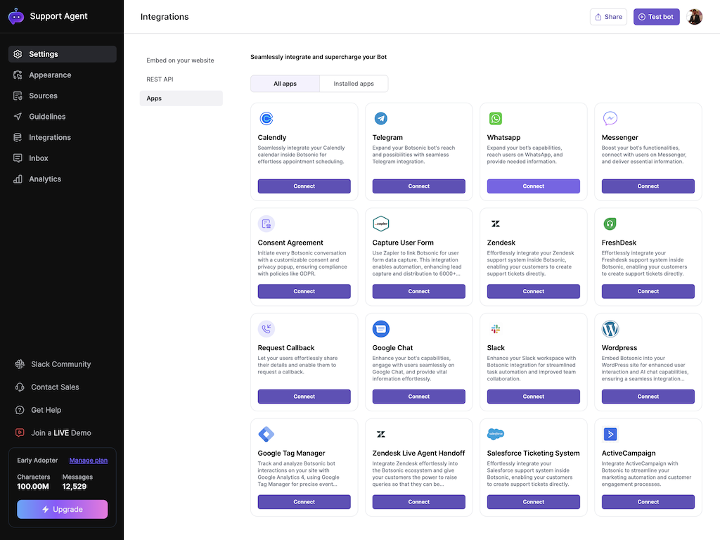 - Scalability: Perfect for businesses of all sizes, Botsonic scales with your needs, handling thousands of queries simultaneously without compromising quality.