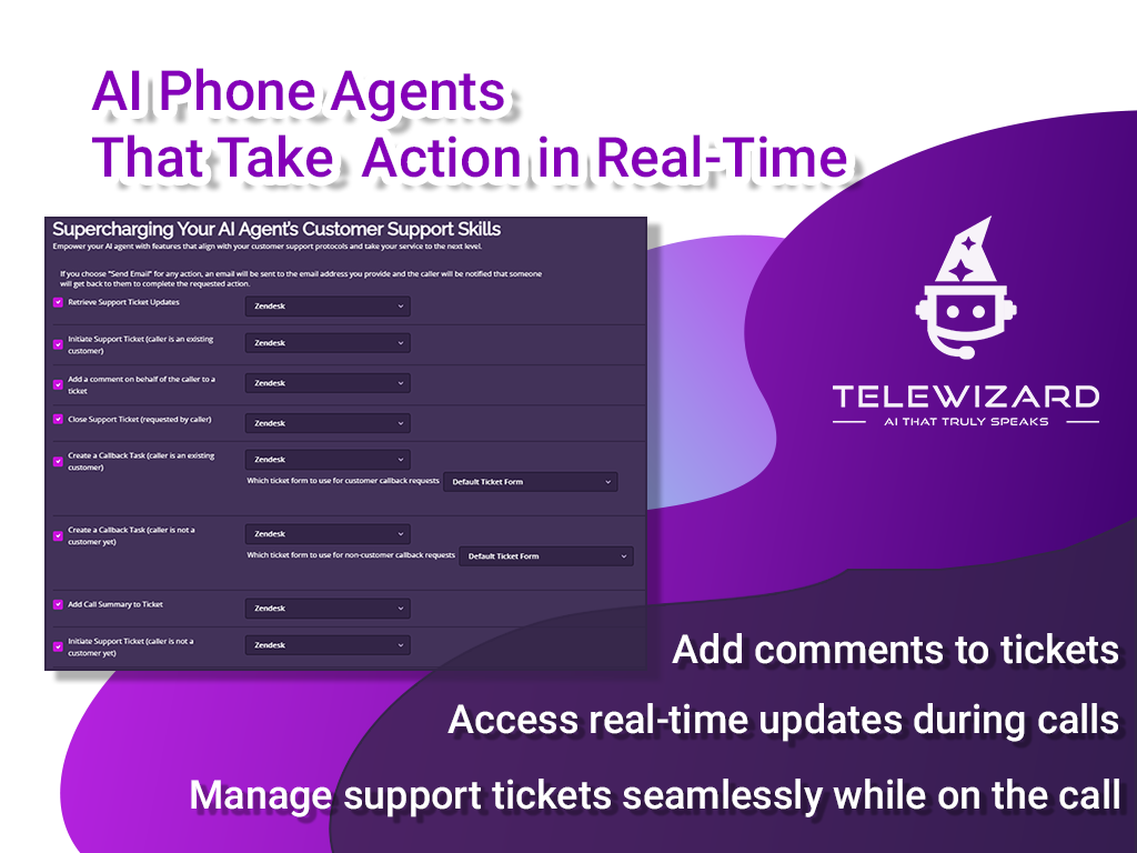 TeleWizard enhances Zendesk workflows by seamlessly integrating AI into your existing support processes: