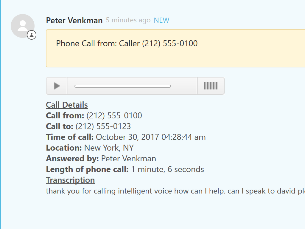 Processed recordings appear in the same manner as the original on the Zendesk Support ticket with full original call metadata.