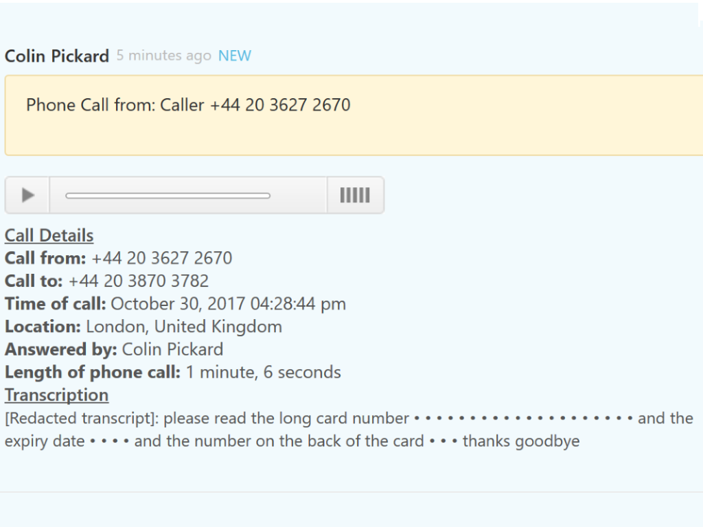A sophisticated, AI-assisted voice transcription engine provides secure automatic redaction of all Payment Card Information and Personal Health Information (upon request) spoken in English from the Zendesk call recording held in a Zendesk Support Ticket. Accurately remove payment card details and reduce liabilities associated with both external and internal threats.