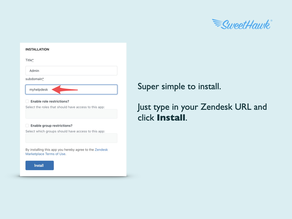 Enter your correct subdomain (without .zendesk.com) when installing.