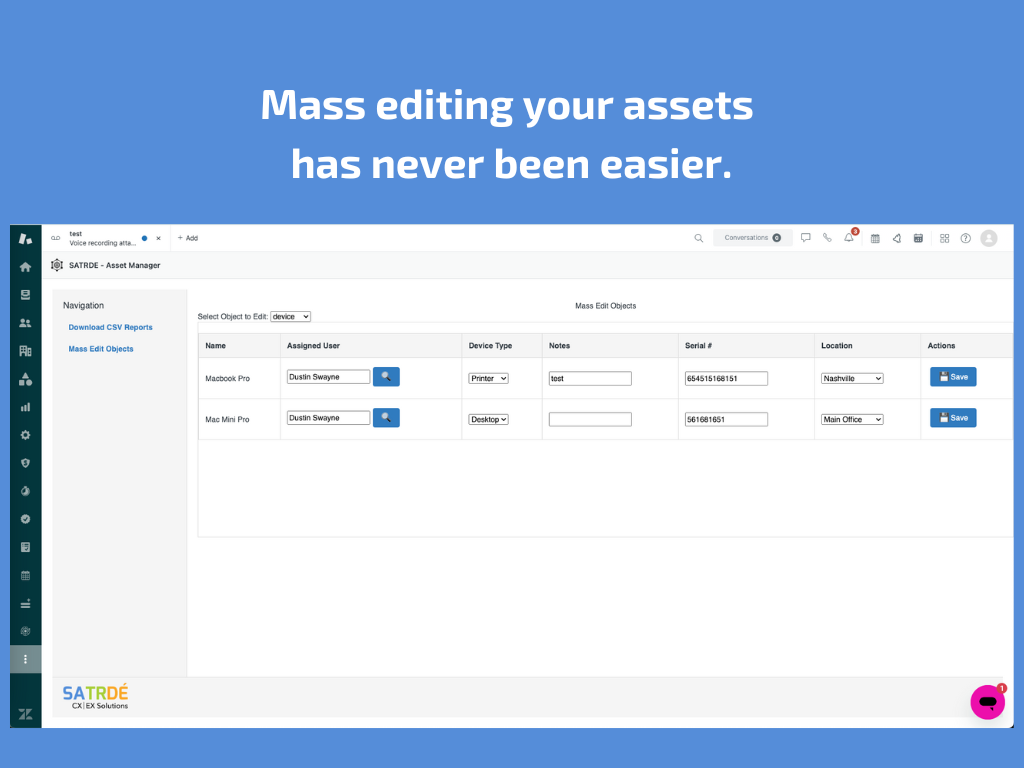 Download your assets, mass-edit, and view all assets tied to users on tickets