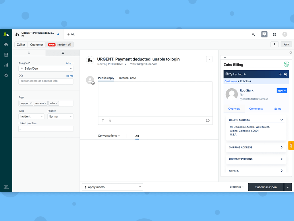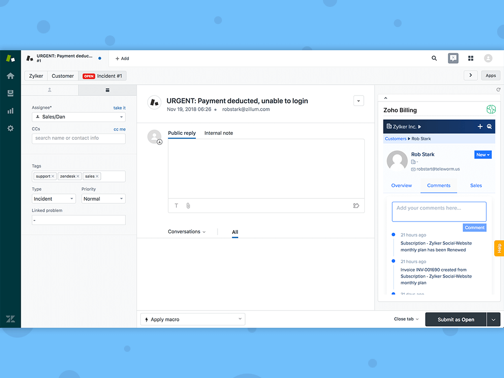 Provide great customer support without having to jump back and forth between apps. Sign up for a free Zoho Billing test account if you haven't already.