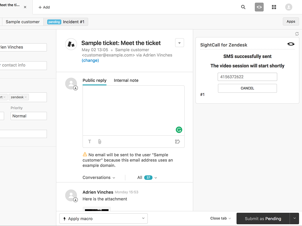 SightCall for Zendesk raises customer service efficiency to the next level by enabling support agents to engage in live video interactions with customers sharing their issues in real time. Before SightCall, support organizations required multiple, long and often complex interactions with customers to understand their issues, leading to confusion, low customer satisfaction and unnecessary product returns. Now, SightCall provides your agents with the ability to see what the customer sees and guide them towards resolution right there and then on their mobile device. SightCall for Zendesk improves understanding, decreases resolution time, reduces product returns and increases customer satisfaction.
