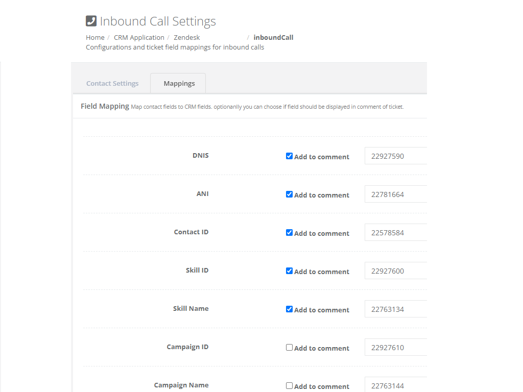 Custom Field Mapping can memorialize inContact contact details into ticket fields, and comments.