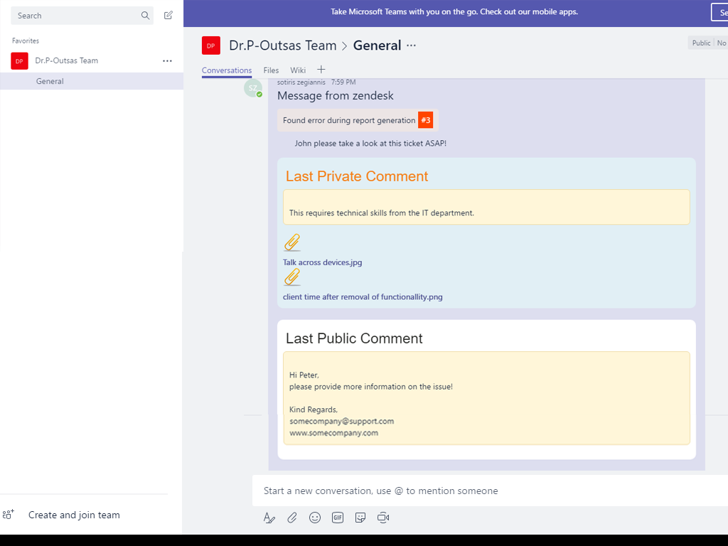 This app will allow agents working on support tickets to collaborate with their Office team by sending them messages on different Office Team channels as and when required.