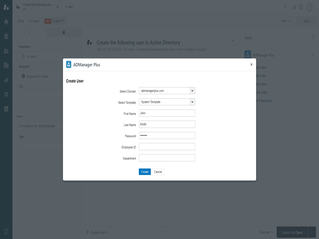 You are now all set to create and manage your employees' Active Directory user accounts from Zendesk console.