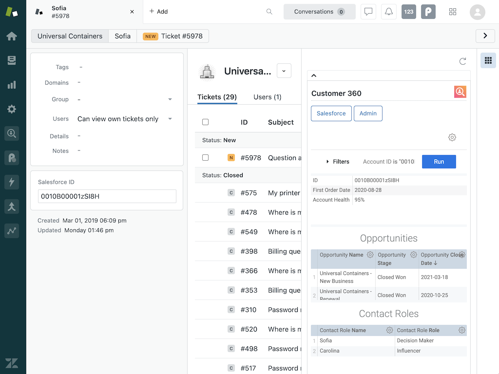Customer 360 runs inside your Zendesk and does not connect to any third-party services. None of your data will be collected.