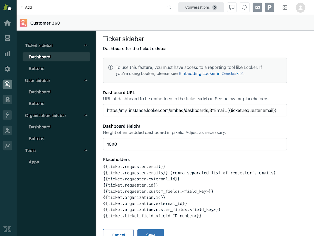 Embed Looker dashboards in Zendesk to provide agents with contextual data