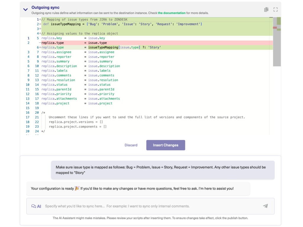 - Sync status, custom fields, priorities, assignee and reporter, time logs, due dates; only private comments, only public comments, or both.