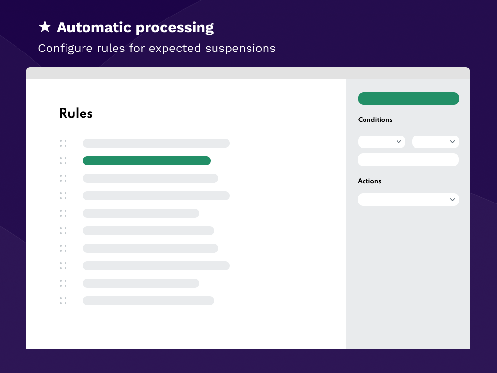 • Create (nearly unlimited) rules for automatic processing of recurring suspended tickets