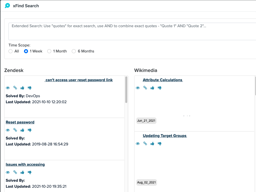 xFind boosts the productivity of customer support reps by proactively serving the relevant organizational knowledge into the ticket in real time. xFind bases its retrieval on the text and metadata of the ticket, no keywords needed.