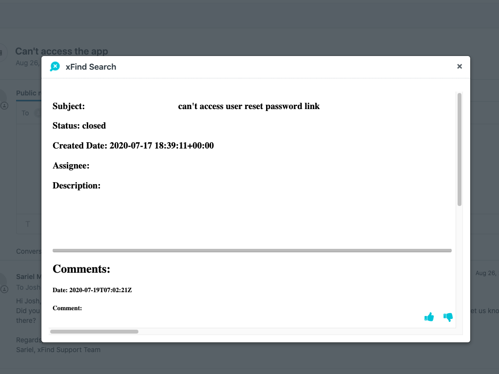 xFind notifies the user once it has found relevant information for the ticket.