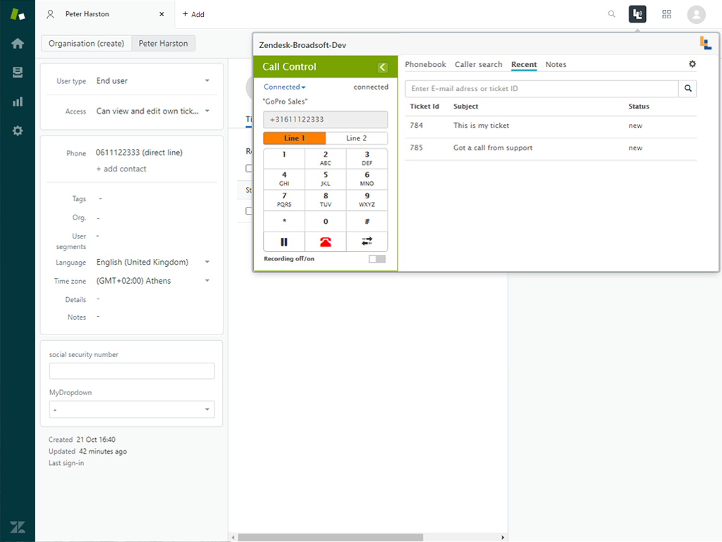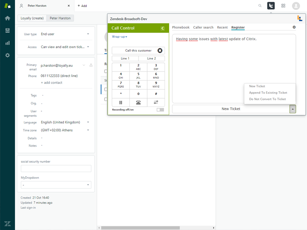 Loyally offers this CTI between Zendesk and Broadsoft as a premium app, using the possibilities of Zendesk for a richer, more efficient and more powerful integration.