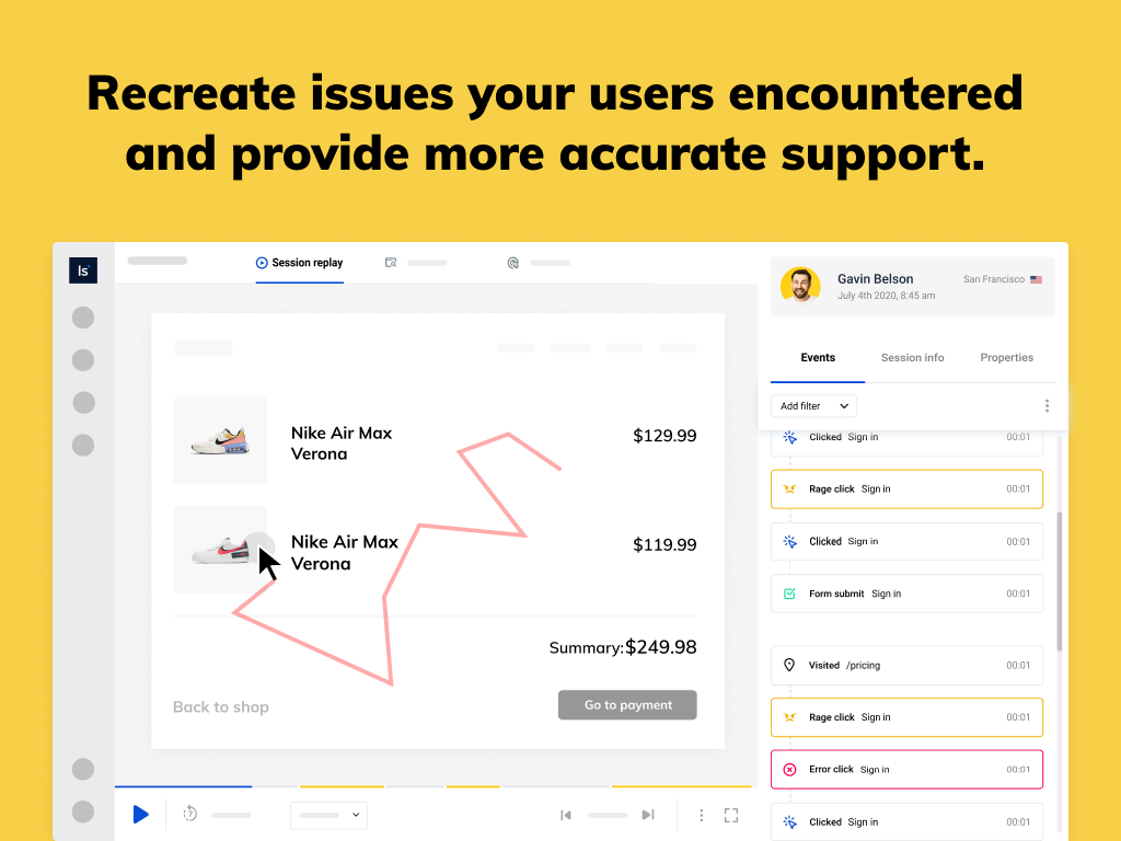 By watching your visitors’ session replays, you will be able to recreate issues they encountered. It will let you provide more accurate support and speed up the whole process.
