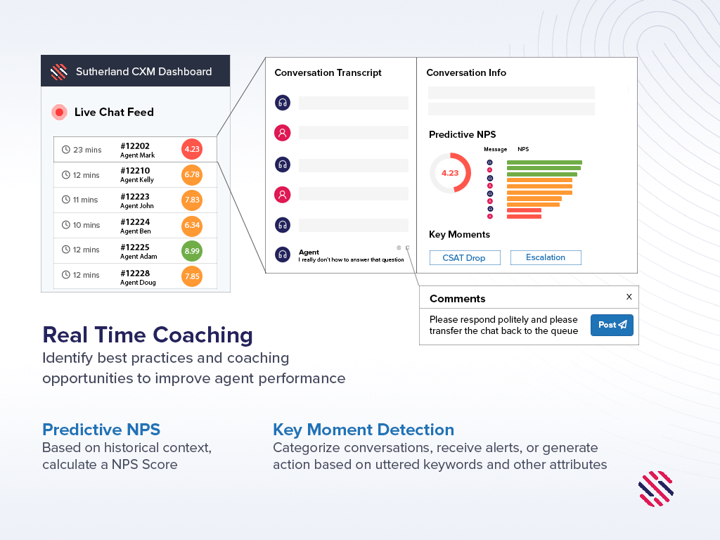Our Real-time Coaching feature goes beyond just coaching your agents, it also predicts NPS scores in real-time, enabling you to make data-driven decisions to improve customer experience.