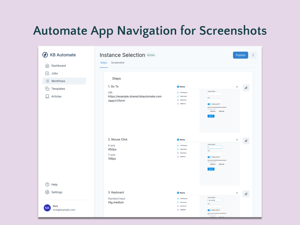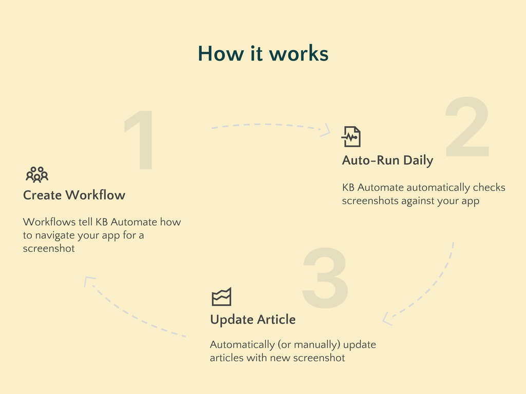 Updating article screenshots for small UI changes is tedius and not a great use of time. KB Automate automates this process.