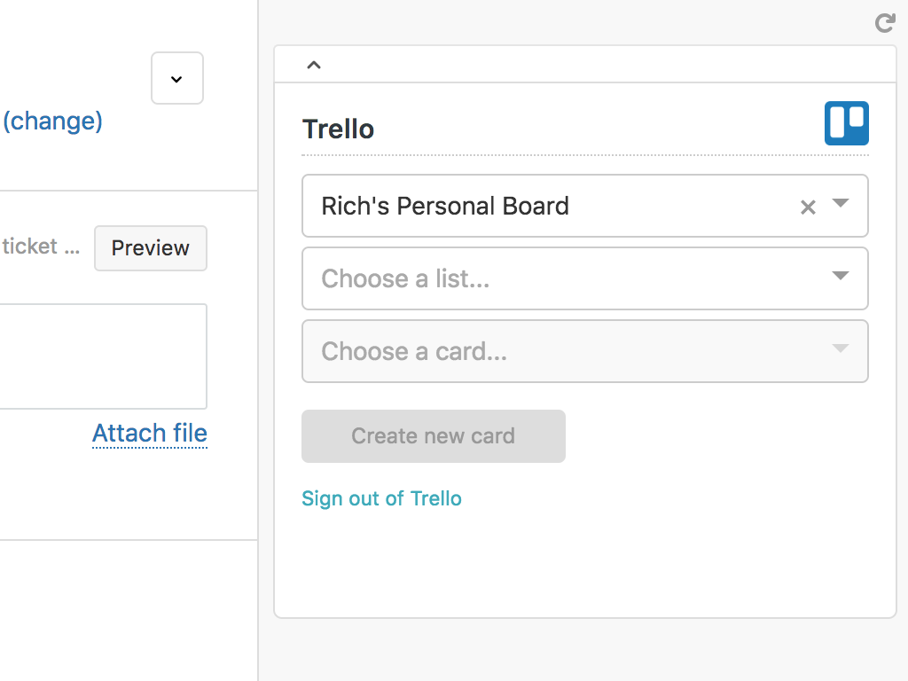 Now it's easier to communicate back and forth between Trello and Zendesk. Once the Trello App is enabled through the Zendesk App Marketplace, simply open a ticket and the Trello widget will appear to the right. From there, you can add the ticket to an existing card, or create a new one. The interface allows you to specify the Board, List, and Card where the ticket will be added.