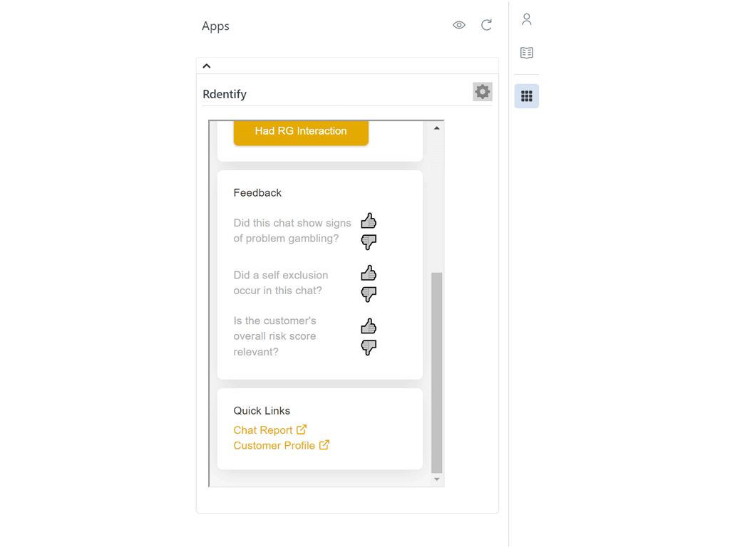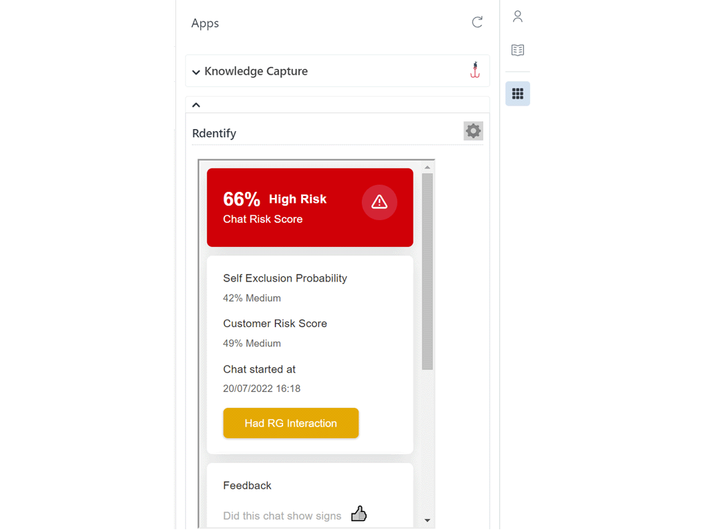 Customers also gain access to the Rdentify User interface which allows for real time monitoring of all Live Chat, bot, or email conversations on one screen, so Customer Support management and Compliance teams can stay on top of the risk.