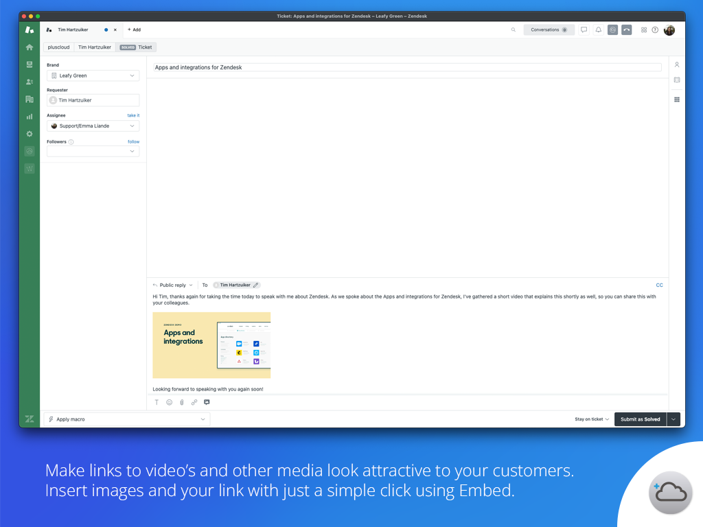 —-Are you looking for ways to further optimize your Zendesk account? We are a Premier Partner of Zendesk, and we help organizations like yours with the implementation of Zendesk, and we build (custom) Zendesk Apps and integrations. Get in touch with us.