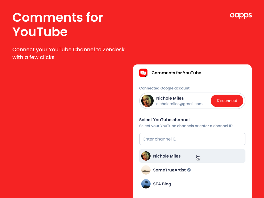Select the YouTube channel you own or enter your YouTube channel ID. The integration will scan for new comments in the selected channel.