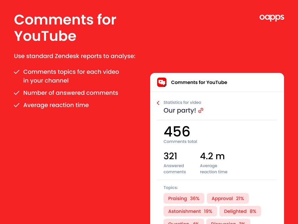 Transfers video comments between YouTube and Zendesk; no other Zendesk data accessed.