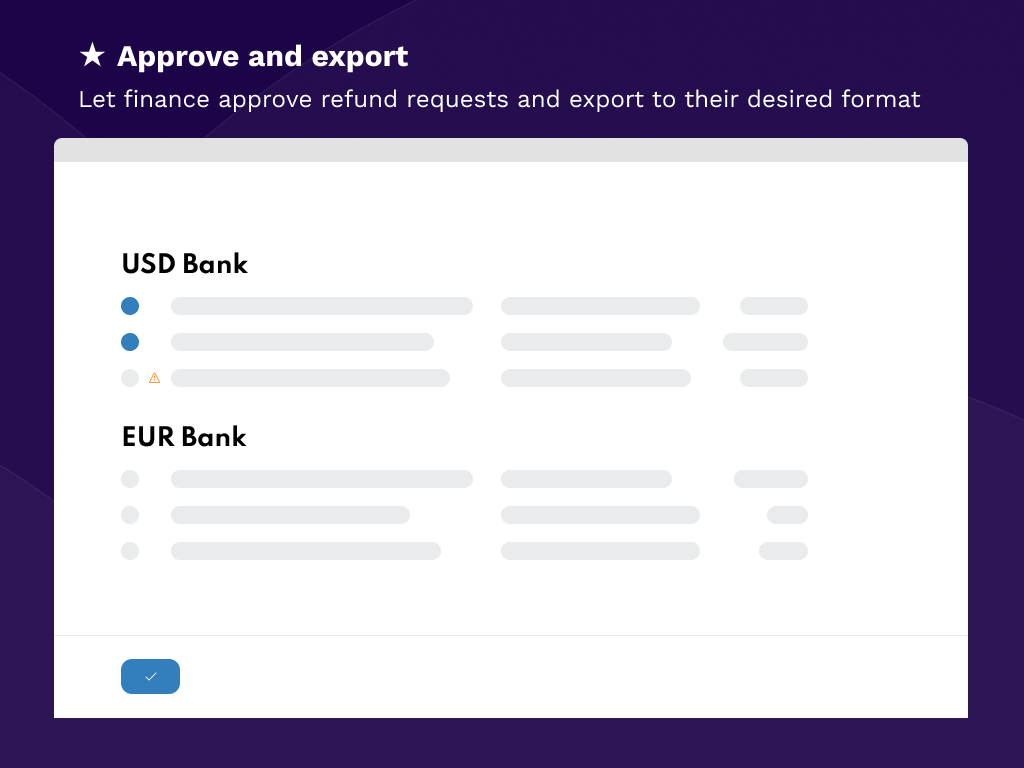 Approve/Reject and Export process gives your finance team the control to go in there and see the refund requests that agents make. When finance approves or rejects, the agent is instantly notified and the ticket is updated for auditing purposes.