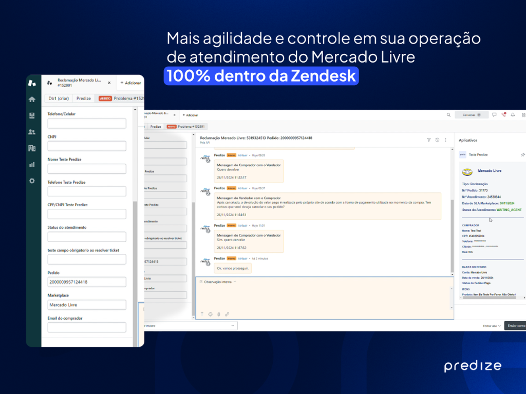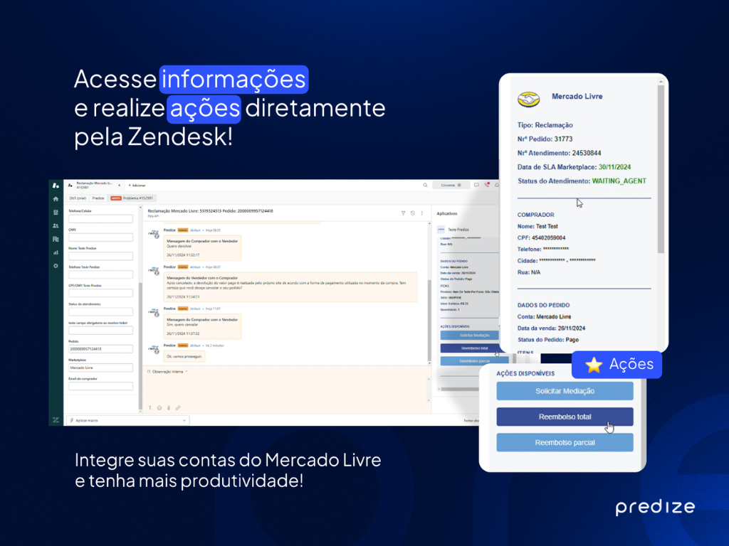 • Realize reembolsos e mediações direto na Zendesk: Sem trocar de painel, sua equipe resolve tudo em um só lugar.