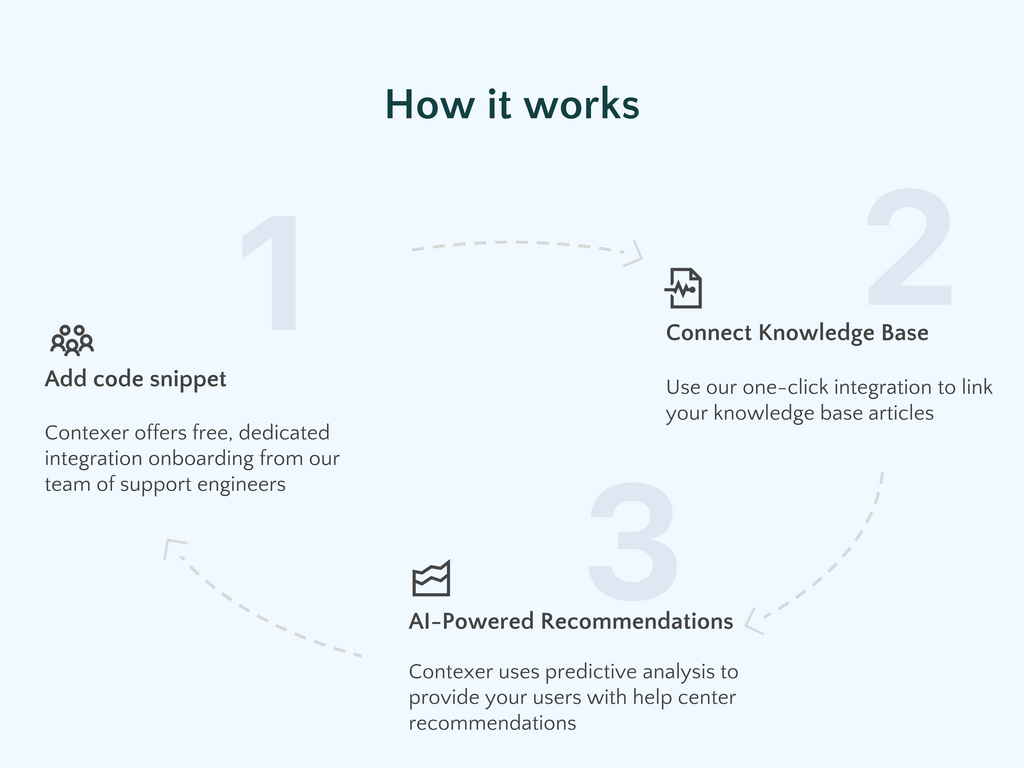 Contexer uses a combination or AI/ML and predictive analytics to get your customers the right help center resources.