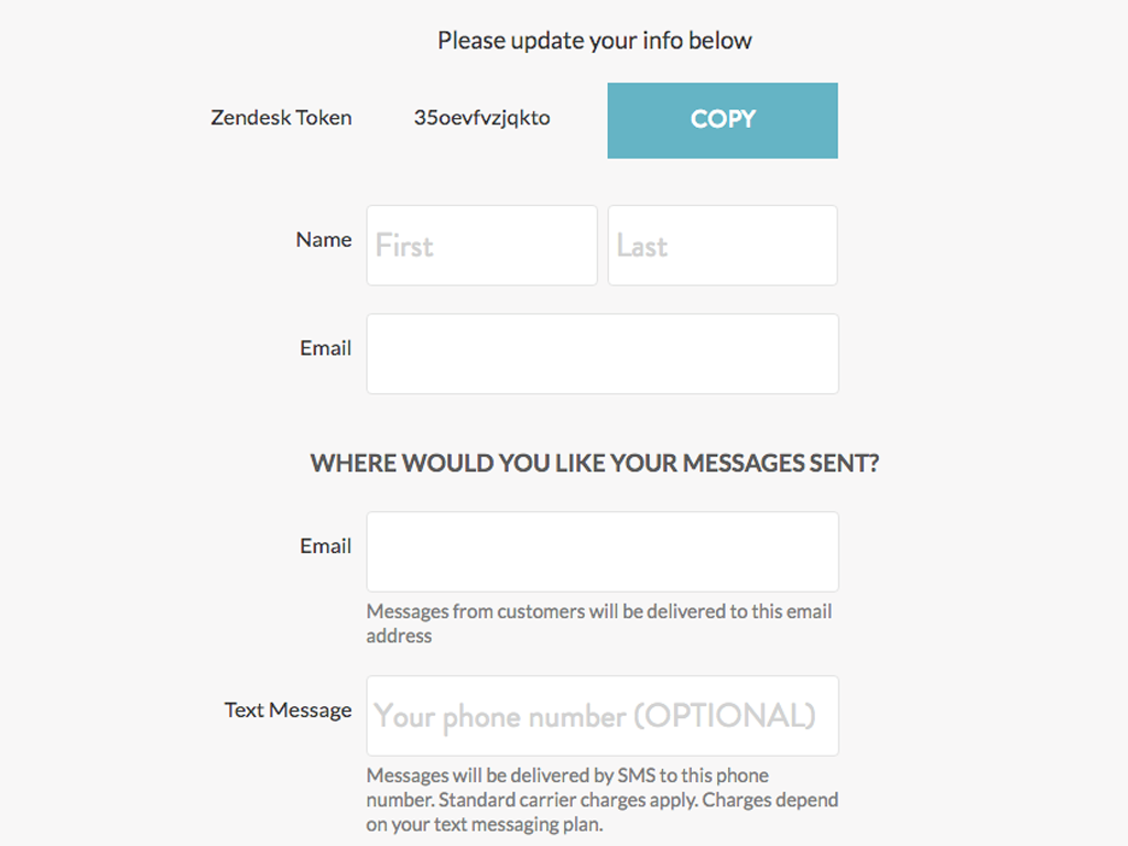 - Head to https://ownerlistens.com/update and copy the OL Zendesk Token manually or by clicking the blue COPY button.