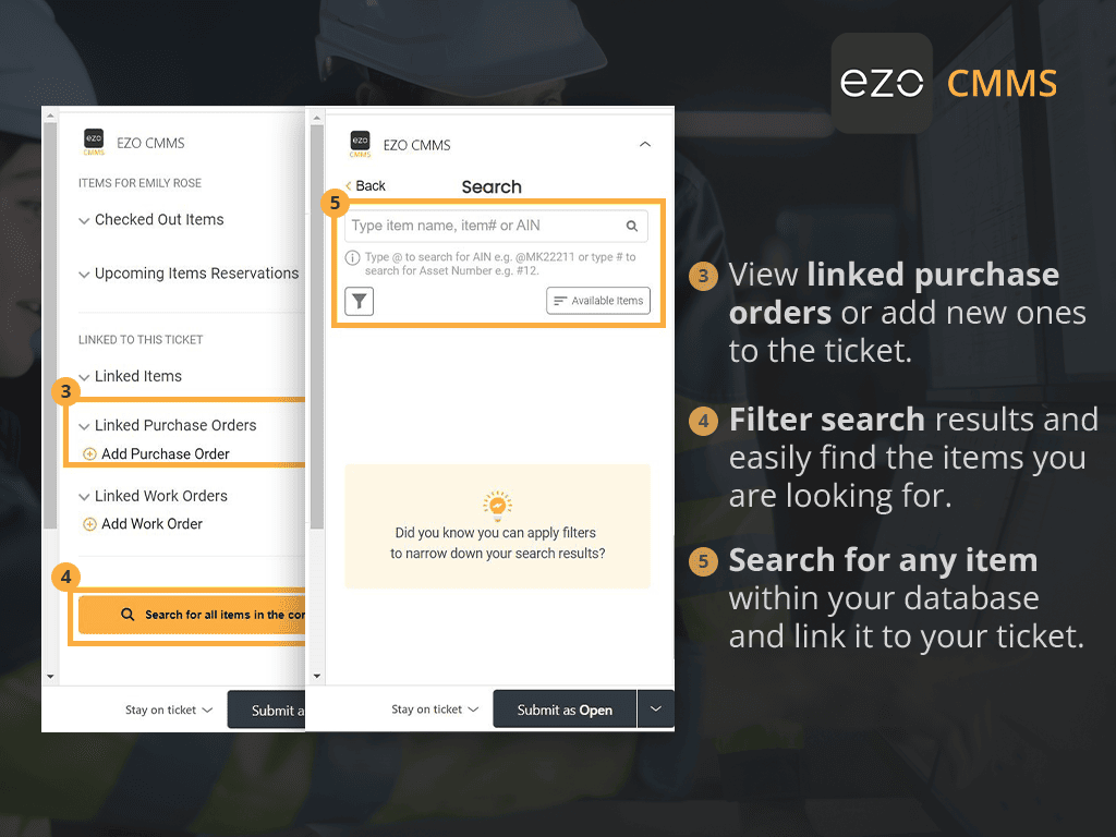 The systems interact seamlessly with each other, offering agents unprecedented levels of control and context when working on incidents. Access all your assets from EZO CMMS and link them with individuals and tickets within Zendesk.