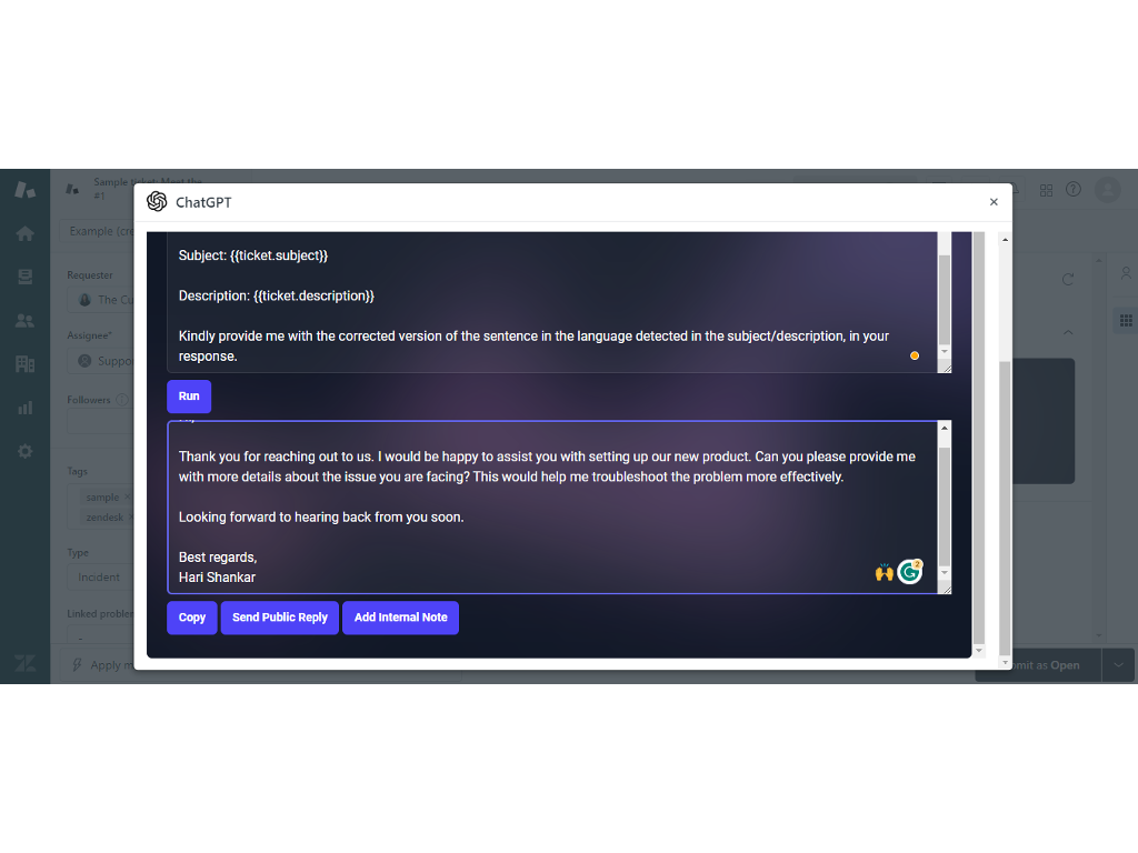 Streamline your customer support with AI-powered response templates using ChatGPT Helper. This marketplace application integrates with your existing customer support system, providing your agents with quick access to AI-generated response templates. With ChatGPT Helper, your team can efficiently respond to customer inquiries while improving response times.