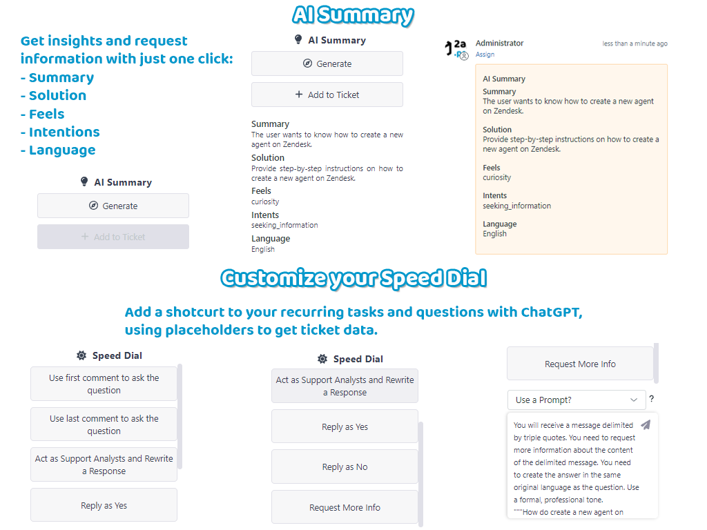 - Customize Speed Dial: Add shortcuts for recurring tasks with placeholders for ticket data.