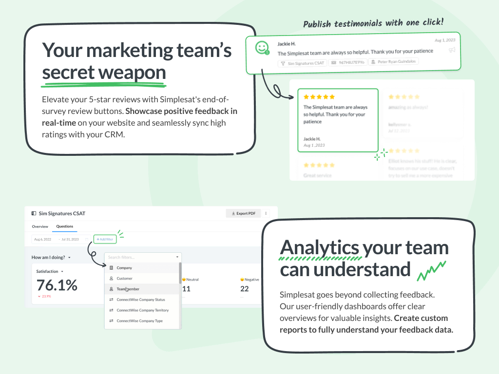 • Read the full documentation on integrating Simplesat with Zendesk here.