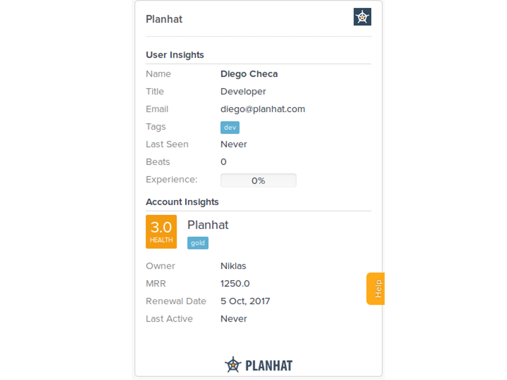 The Planhat application will help your support agents identify key users, get churn and up-sale alerts and understand the key subscription data such as the MRR value, renewal dates etc.