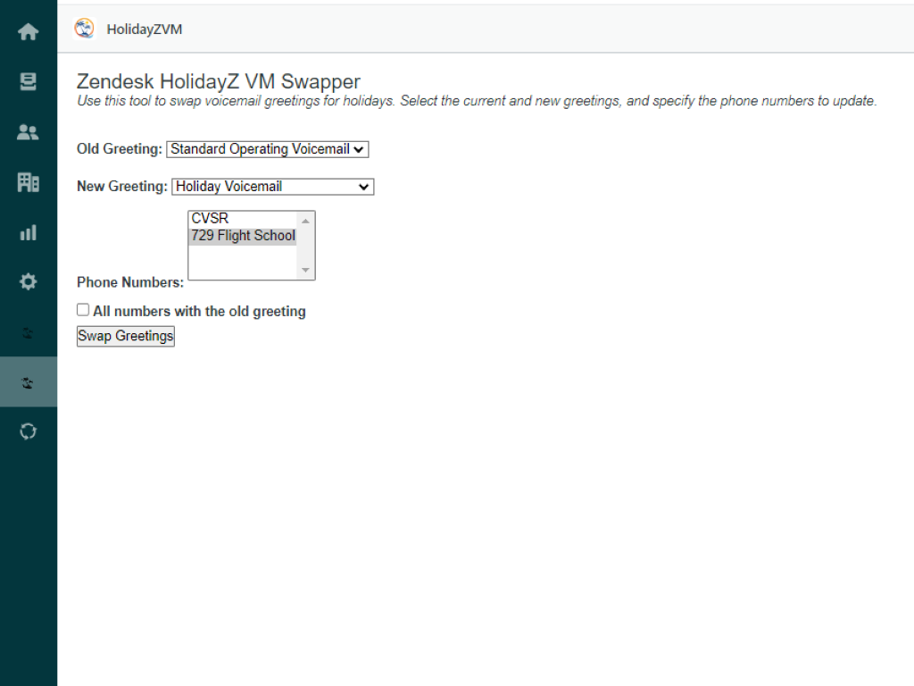 HolidayZ VM Swapper lets Zendesk Admins bulk update your out of office voicemail across all Zendesk talk lines with the click of a button!