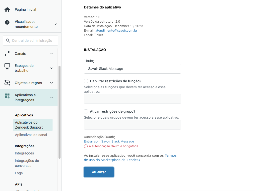 Installation is simple. Simply search for the Savoir Slack Message app in the Zendesk Apps Marketplace and click Install.