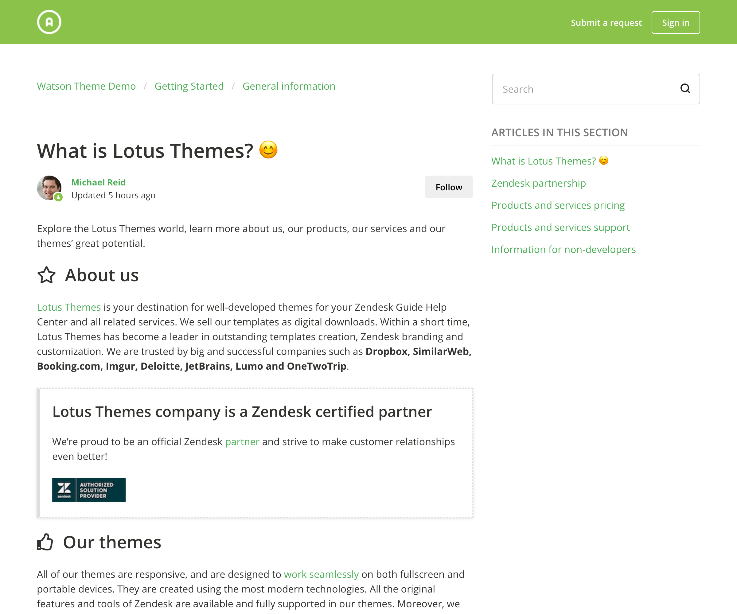 Zendesk trusts their help centers to Lotus Themes