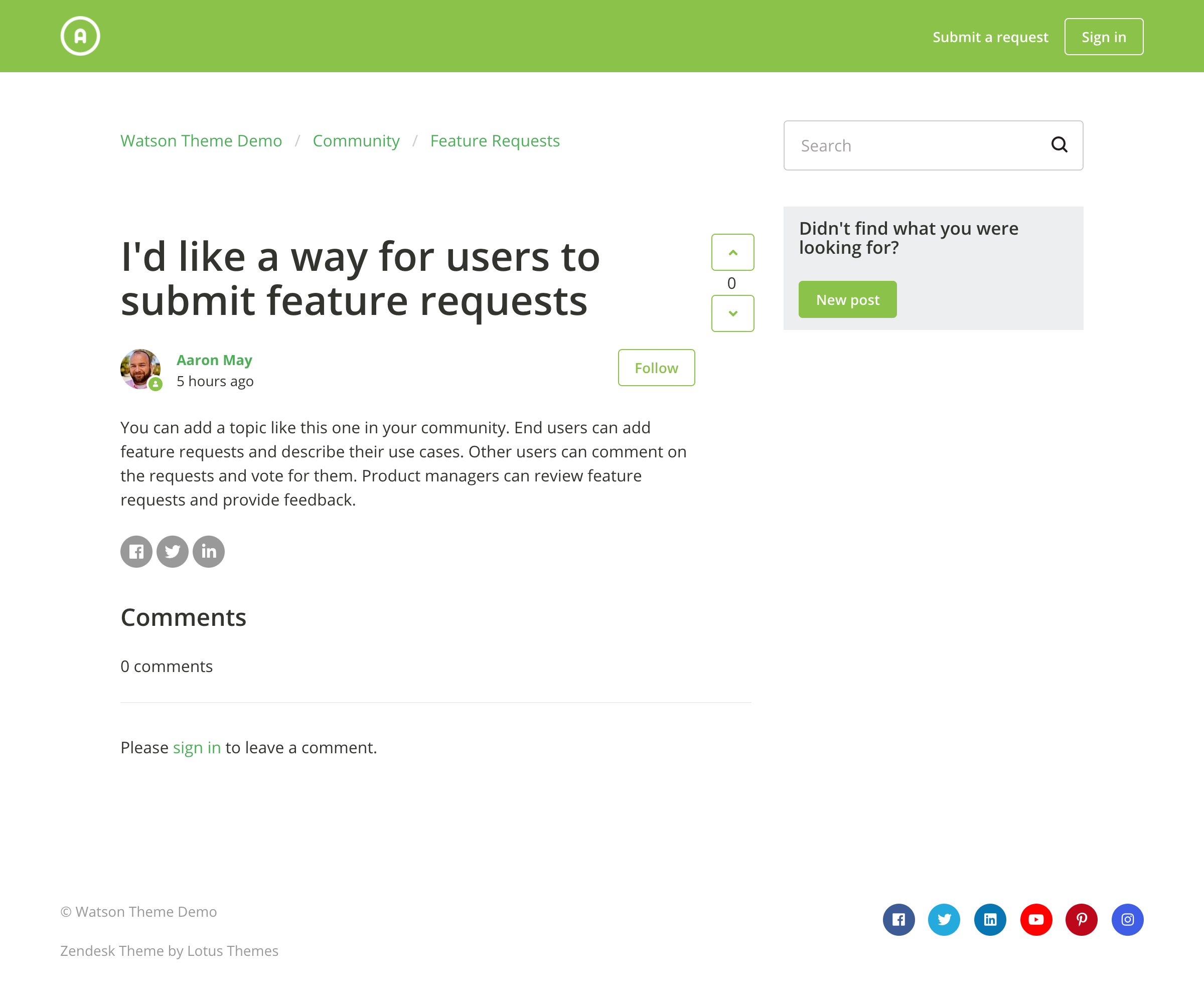 Watson is a mobile-friendly Zendesk theme with a non-standard layout. It lets you organize help center elements as you wish and keep navigation super easy.