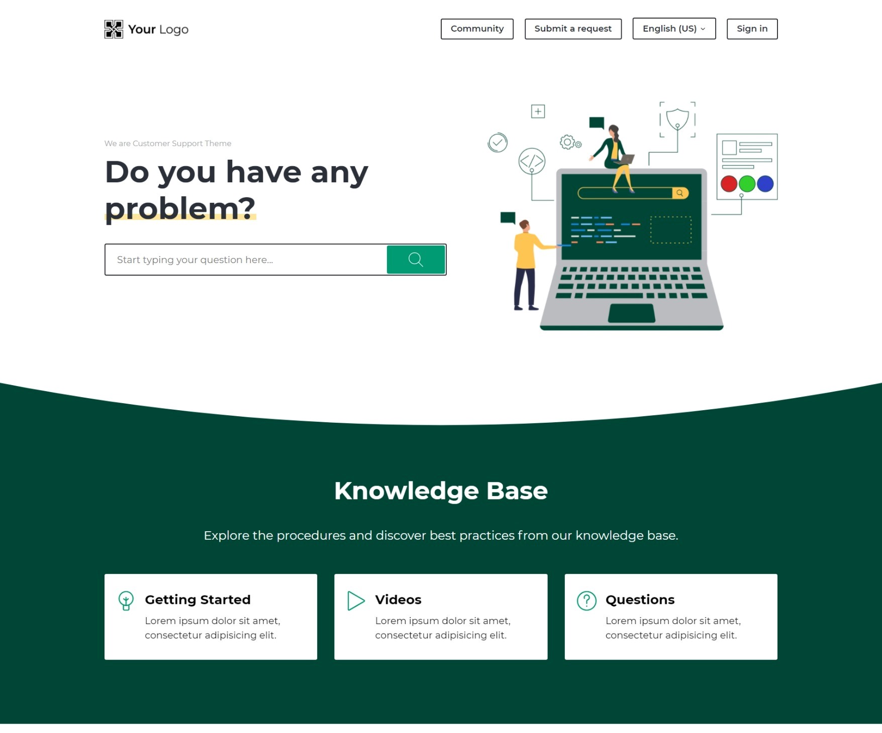 Solo is a clean and fully responsive Zendesk Support Center theme that is very easy to use and customize. On the homepage, you will find a stunning graphic vector image with smooth animation of text and image that will grab the viewer's attention greatly.