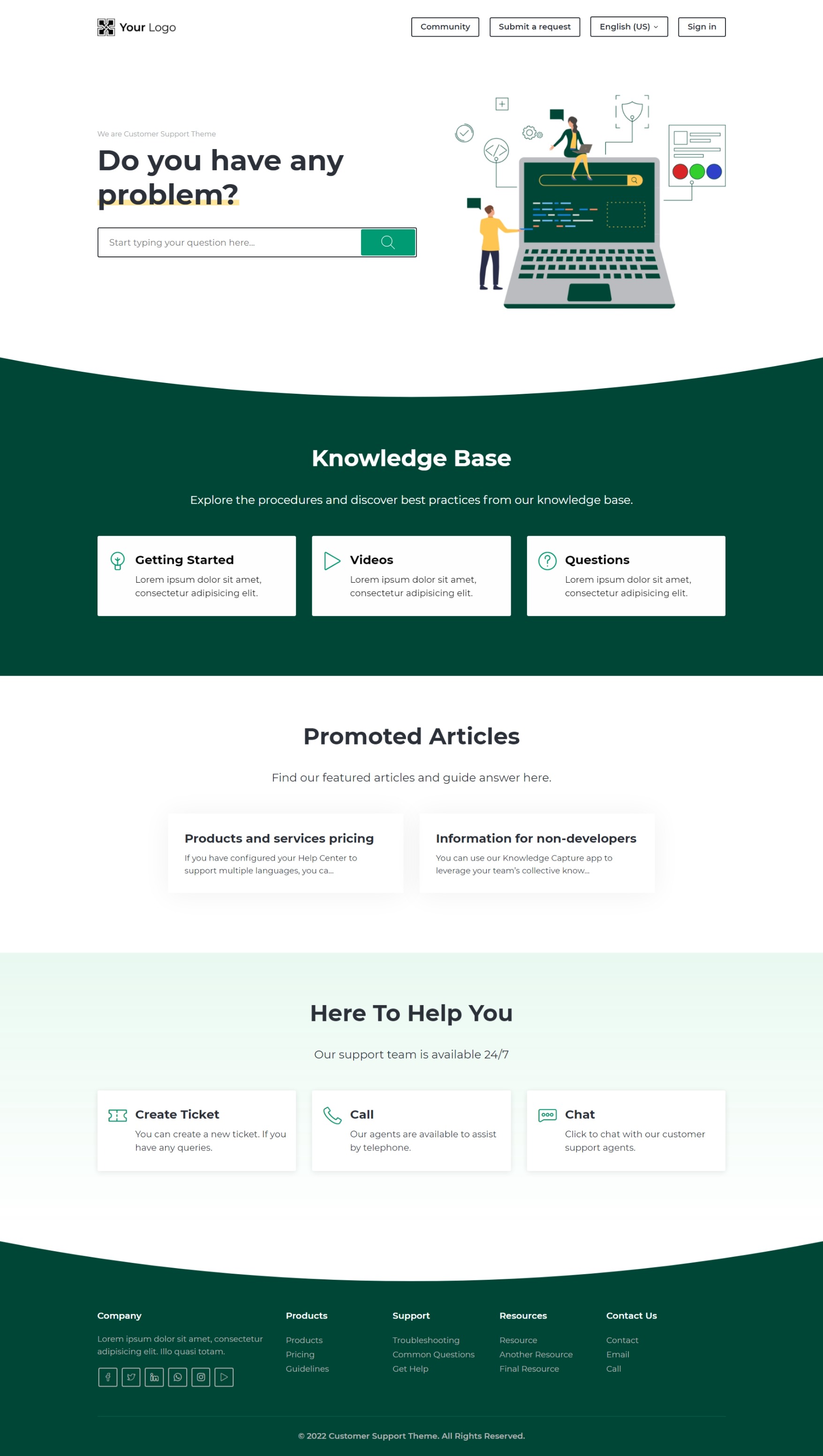 - Homepage category blocks icon (Font icon) - You can only update Six (6) icon in setting option. If your Help Center has more than Six categories then you have to go with the Developer license. it requires additional customization. We'll do it for you (FREE).