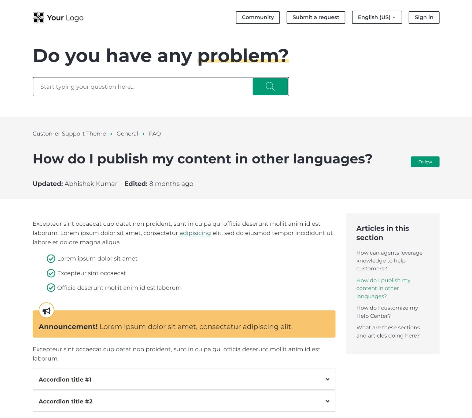Solo can’t be wrong with the stunning, trendy yet professional looking Zendesk Help Center(s) Theme.