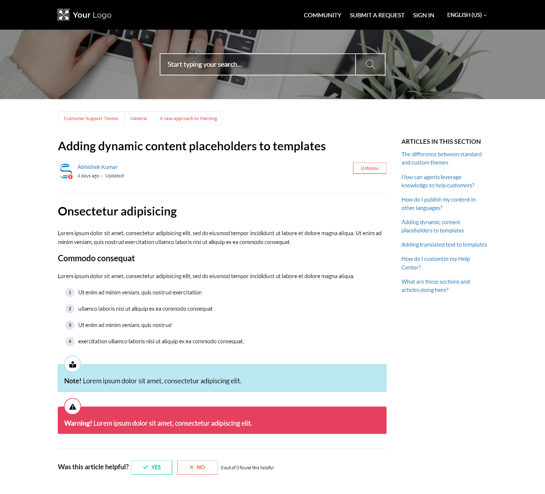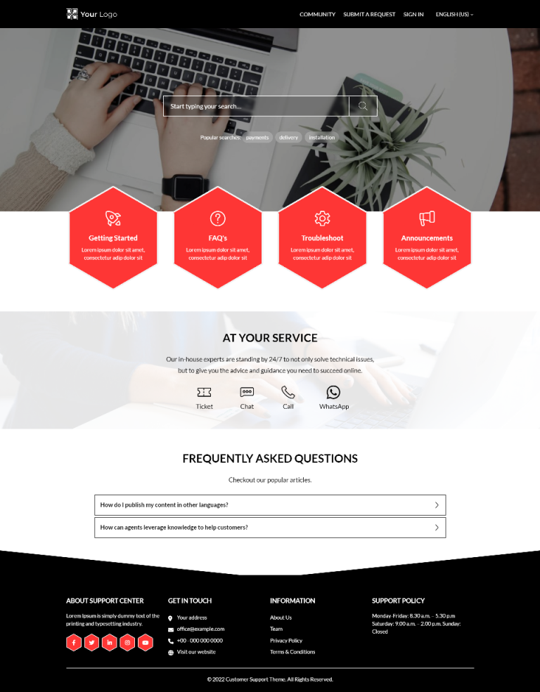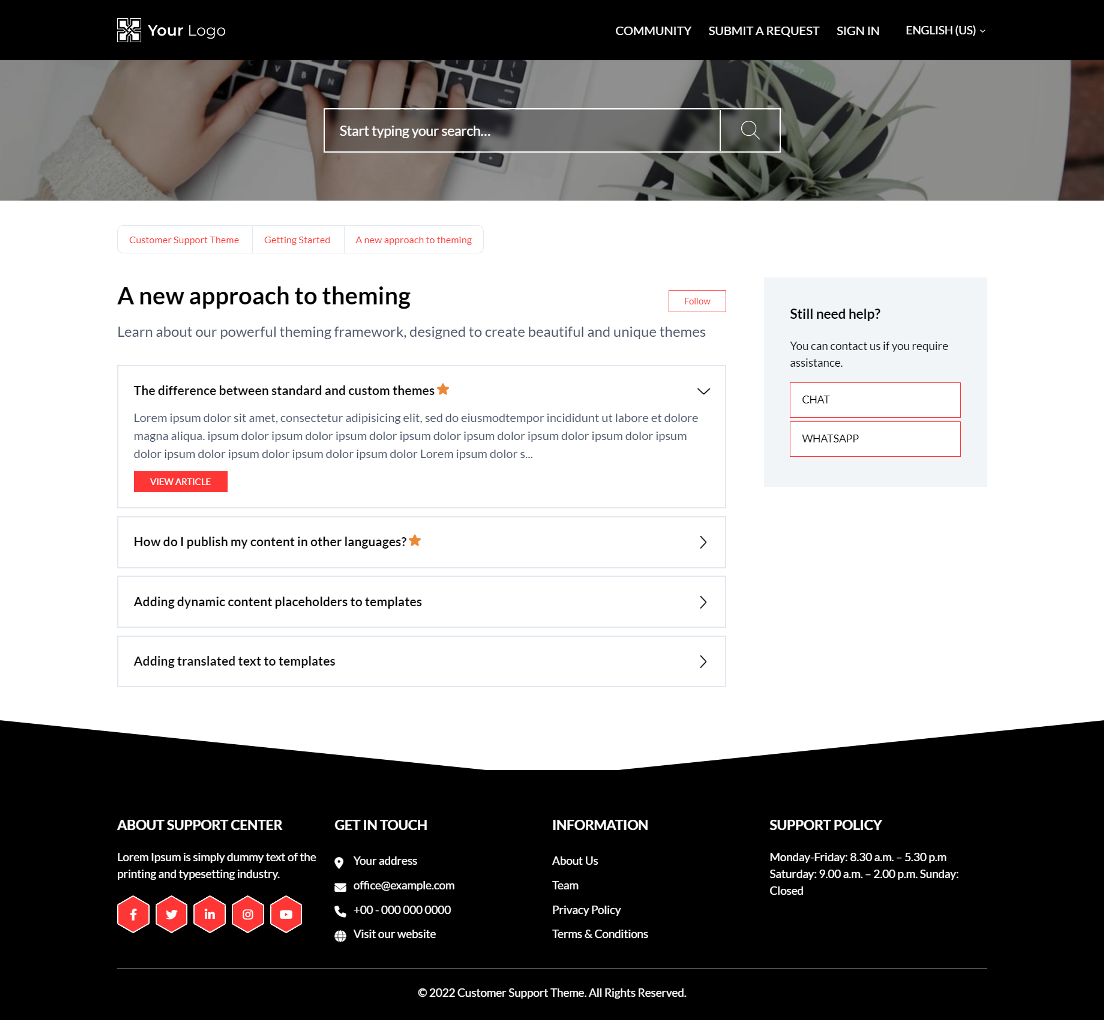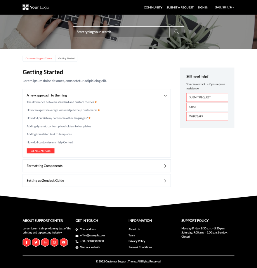 Hexas is a perfect Zendesk guide theme for a basic help center(s). It features an accordion in Promoted articles.